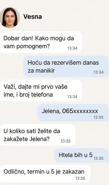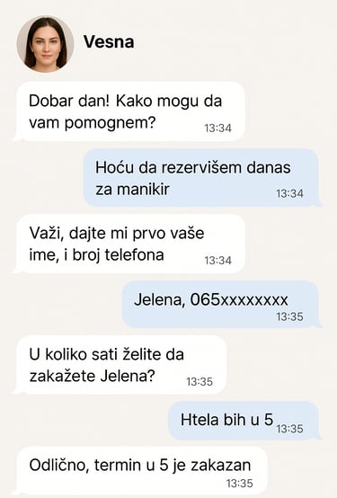 On koristi unapred definisana pravila ili veštačku inteligenciju da odgovara na pitanja, pruža informacije, prima porudžbine ili zakazuje termine – 24/7, bez pauze.